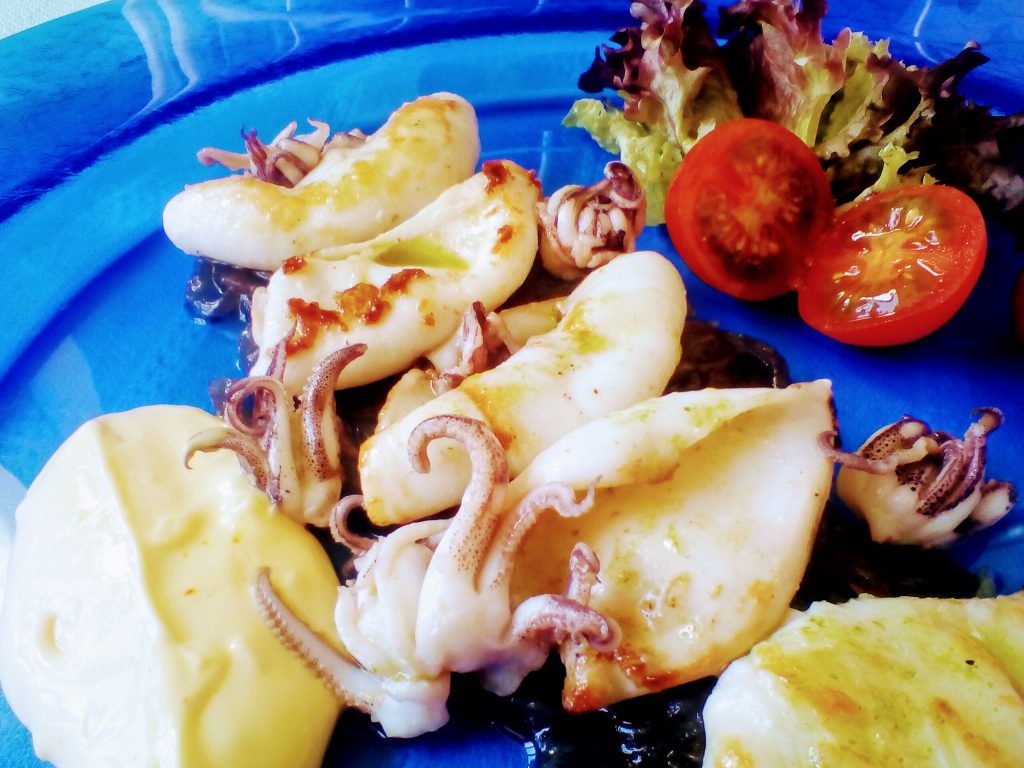 Una elaboración sencilla y clásica que gusta a todo el mundo y es que los chipirones ya desde el momento que los echamos a la parrilla con ese olorcito que desprenden y ese doradito que van cogiendo hacen que la impaciencia se apodere de ti por las ganas de sentarte a la mesa y comértelos. La cebollita caramelizada le aportan un dulzor (sin pasarnos) muy agradable que junto al sabor del ajo del ali oli enriquecen nuestra propuesta de hoy.
