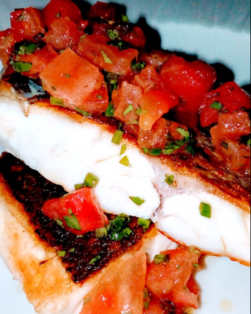 Vamos hoy con una lubina algo diferente en su ejecución pero muy sencilla de elaborar (todos hemos confitado alguna vez en aceite de oliva algún pescado, carne u otro tipo de producto, pues es lo mismo pero sustituyendo un tipo de materia grasa por otro) El resultado es sorprendente y muy sabroso, ya sabemos que el tocino ibérico aporta un marcado sabor y olor muy característicos (que sería del jamón ibérico sin su tocino…) que en esta ocasión potenciaremos con el romero fresco y el ajo, pero que podemos aromatizar con otro tipo de hierba como tomillo, albahaca, azafrán etc…con lo que más os guste.
