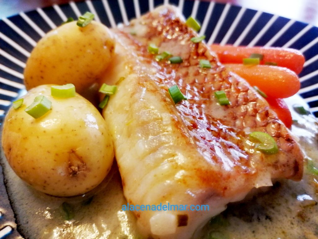*Cuando la salsa tenga la textura deseada introducimos los lomos de pinto con la piel hacia arriba y cocemos por espacio de 4 minutos a fuego suave, dejamos reposar otros 4 minutos.