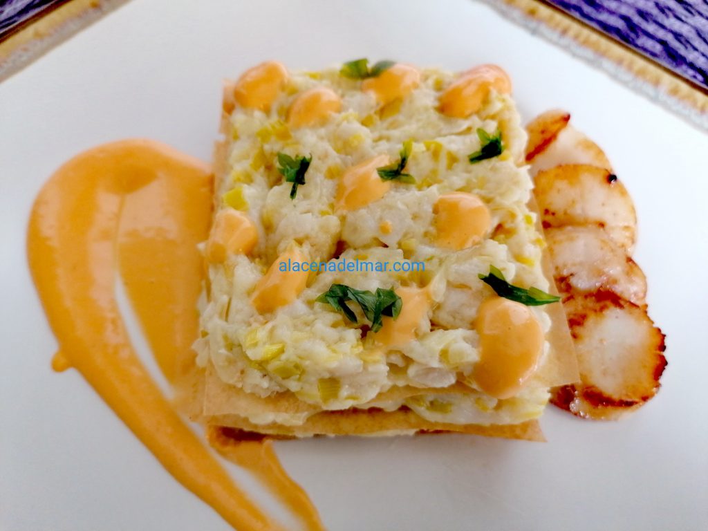 Milhojas de vieiras, crujiente y cremoso a la vez, que decir de las vieiras con su sabor entre pescado y marisco, sabor peculiar pero siempre delicioso, el mar en estado puro. Hoy toca receta muy sencilla, de las que hacemos en poco tiempo y que gustan a todos por igual.