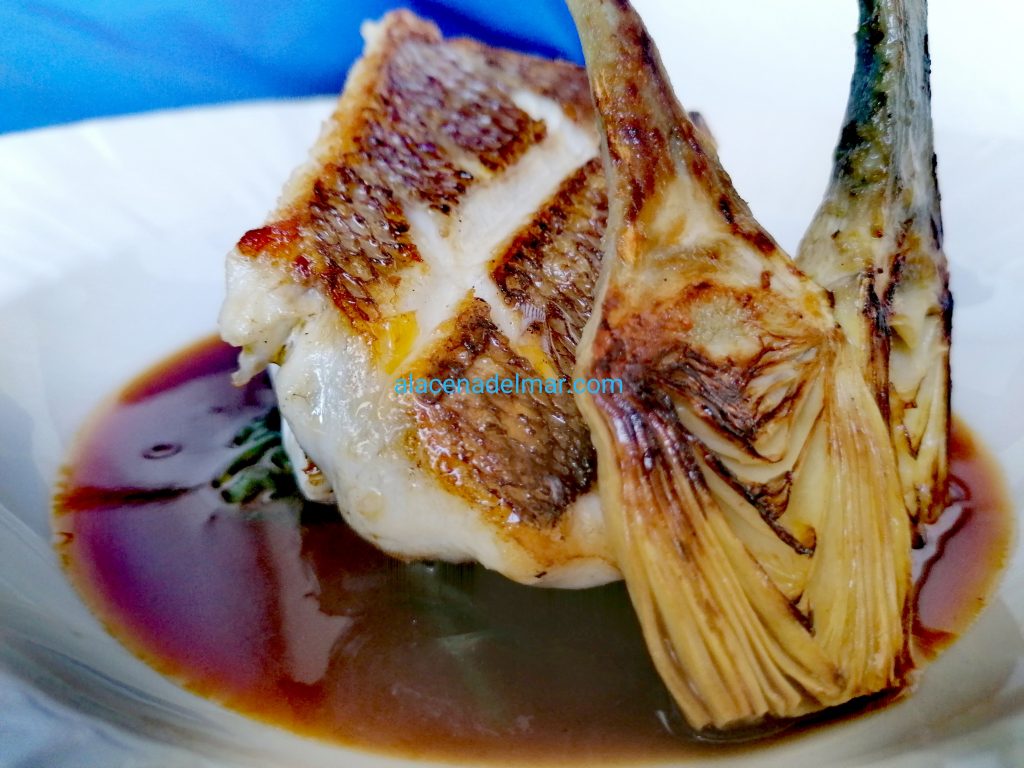 Receta de cosecha propia que a base de ir probando diferentes elaboraciones de caldos y guarniciones creo que al final dimos con la tecla exacta. Este caldito de cebolla asada le viene a la perfección, le aporta ese punto de dulzor a la urta y se compenetra de manera sublime con la alcachofa. Todo el conjunto hacen de este plato un bocado excepcional, un equilibrio de sabores maravilloso, delicado al principio con toda la potencia de sabor del caldo y el pescado al final, nos dejará un regustito que perdurará en nuestro paladar.